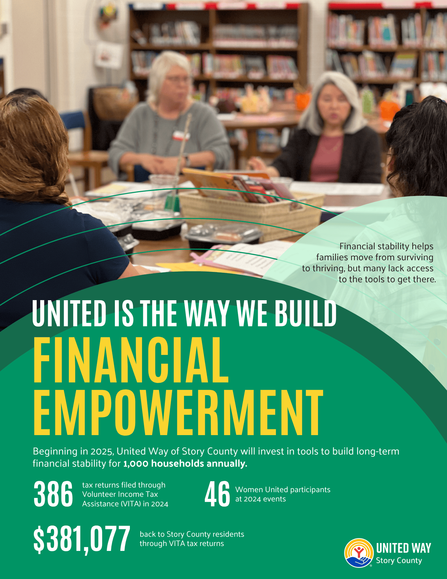 Beginning in 2025, United Way of Story County will invest in tools to build long-term financial stability for 1,000 households annually through: